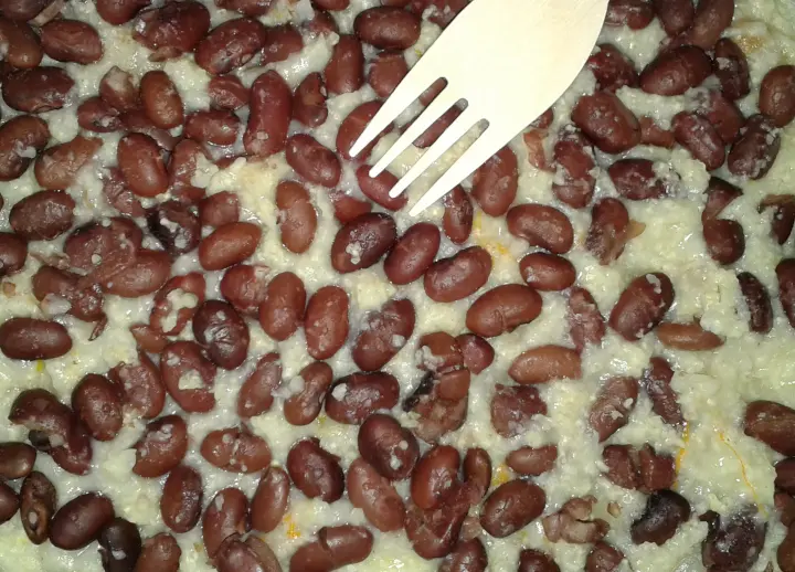 Here I put mung beans on top of single layer of flat Lavash and covered them with egg, onion and gralic slices.